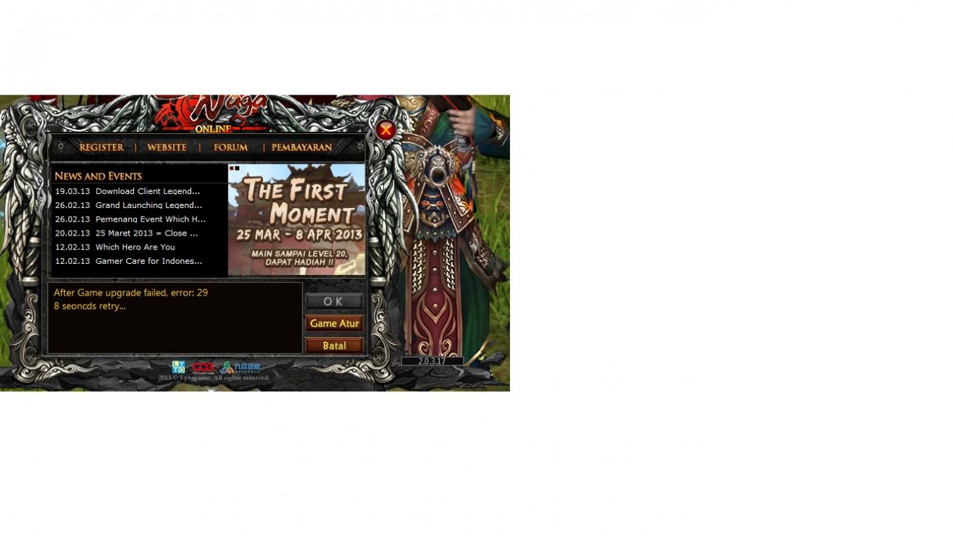 saat memasukan ID dan Password, silahkan melakukan Install ulang Legenda
